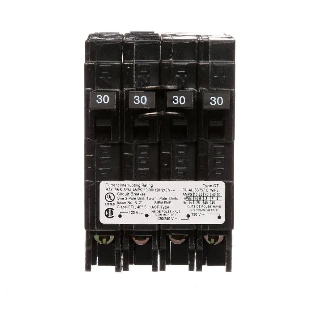 Siemens 30 Amp Double-Pole and (2) 30 Amp Single-Pole Type QT Quad Circuit Breaker