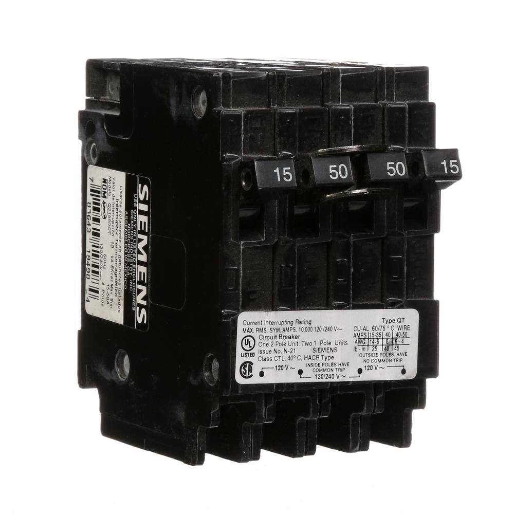 Siemens 50 Amp Double-Pole and (2) 15 Amp Single-Pole Type QT Triplex Circuit Breaker