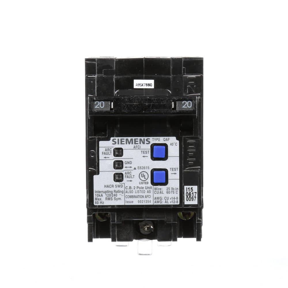 Siemens Type QAF 20 Amp Double-Pole Combination AFCI Circuit Breaker