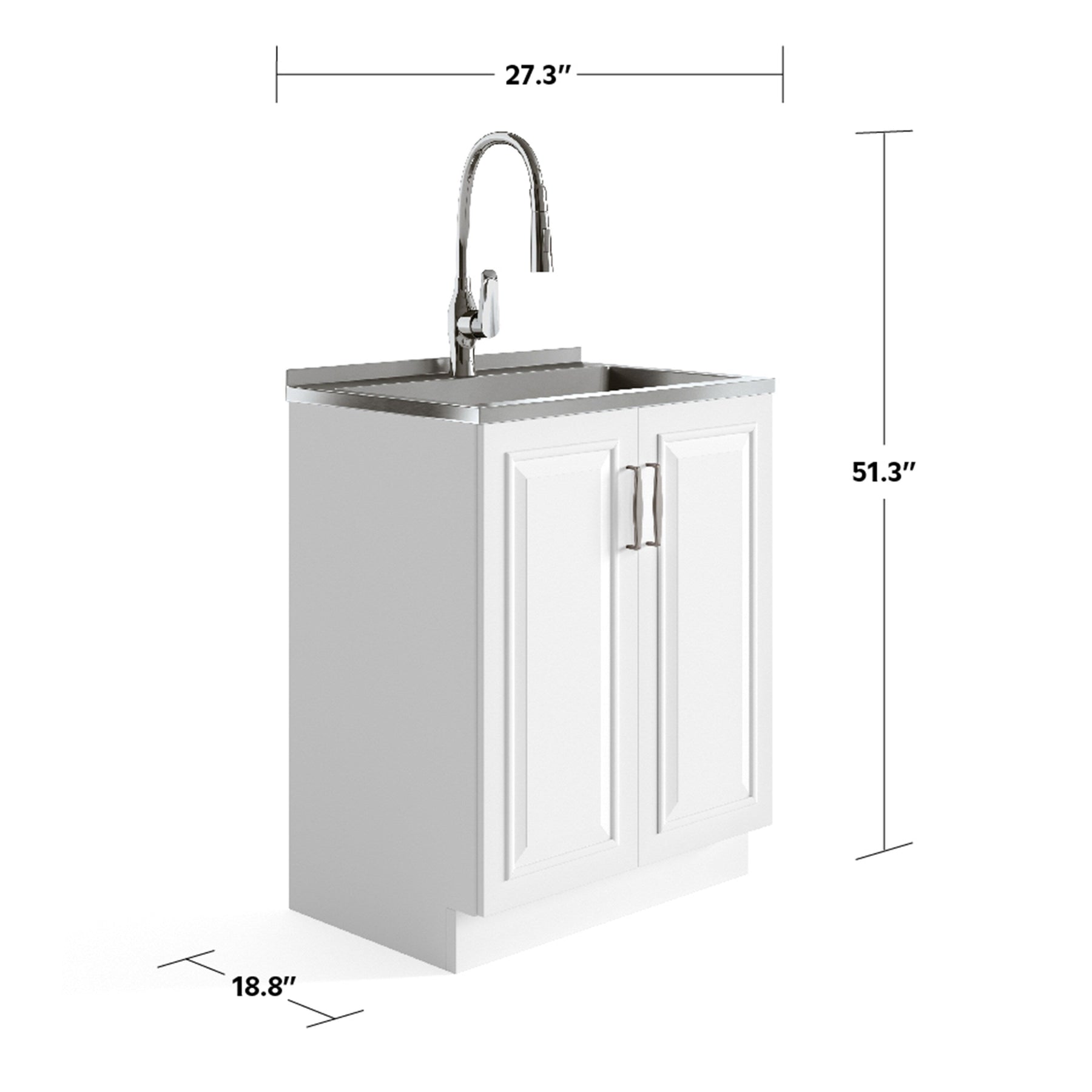 Simpli Home Darwin 27.3" Pure White Freestanding Laundry Sink with Cabinet
