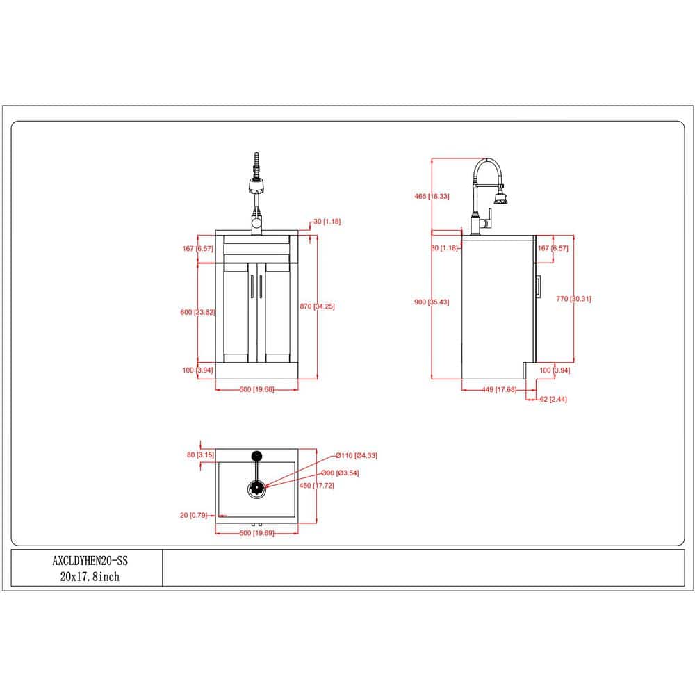 Space-Saving Design: 20" cabinet with an integrated stainless steel sink fits compact areas.