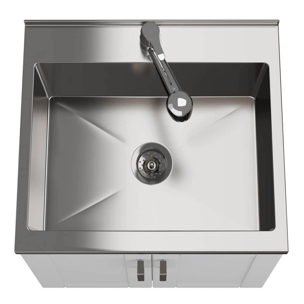 A: Yes, the 20-gauge brushed stainless steel sink is integrated into the cabinet, providing a seamless solution for your cleaning needs.