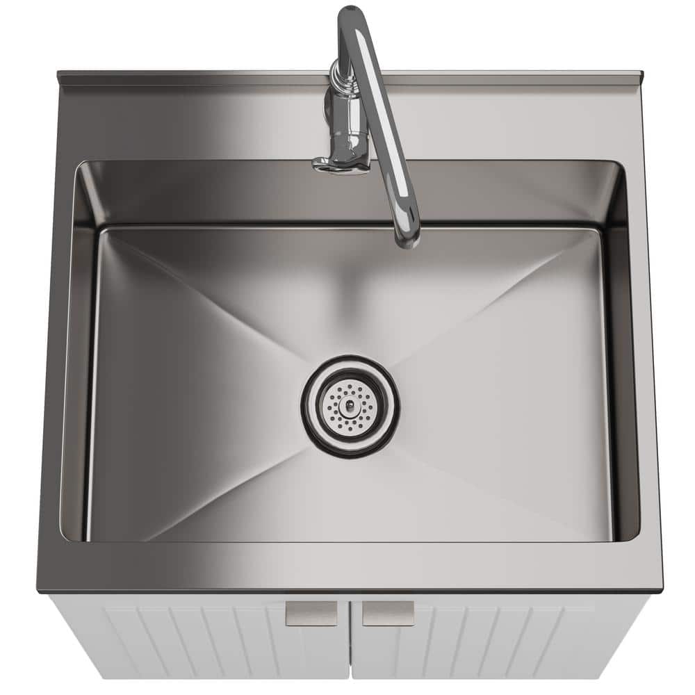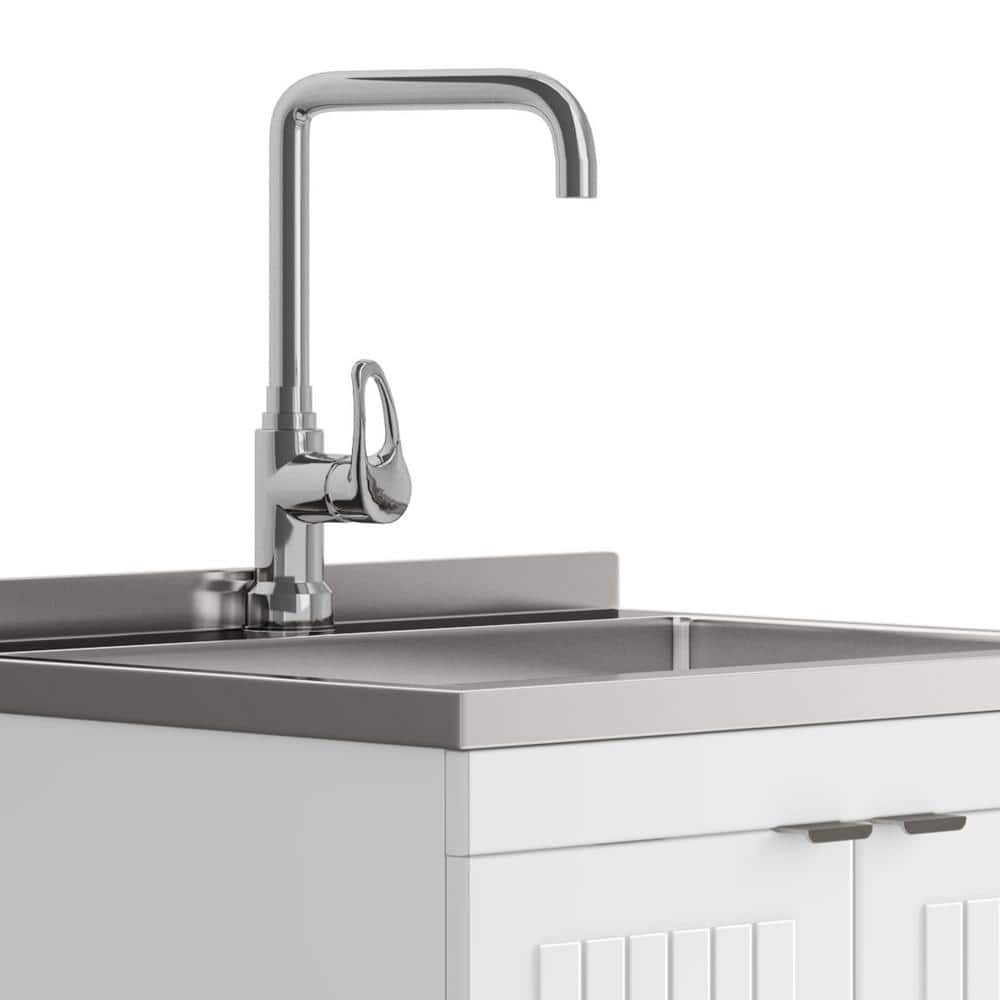 A: Absolutely. The high-arch chrome faucet features a pull-out spray for flexible water control, ideal for tackling various cleaning and filling needs.