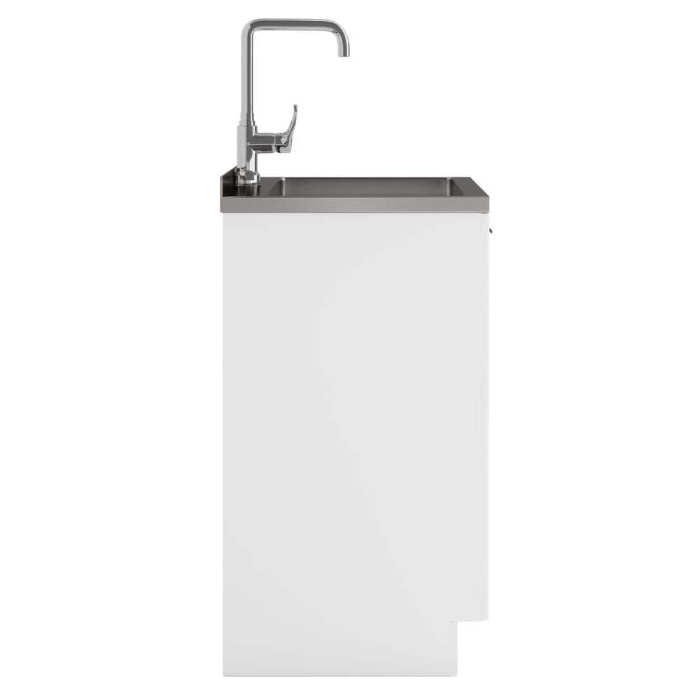 Transform your mundane laundry routine into an elegant affair with the Murphy Transitional Laundry Sink. Its crisp white finish and sleek stainless steel basin add sophistication to even the most utilitarian spaces. Accented by brushed nickel pulls, this sink makes a design statement while providing functional convenience. Pair with soft, neutral décor elements to create a serene and efficient space that embodies luxury and practicality in equal measure.