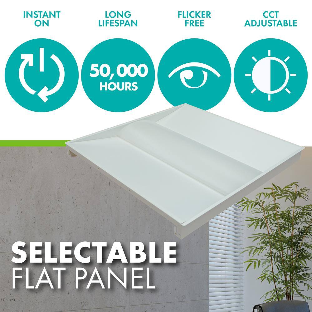 A: The Simply Conserve LED Troffer Light features field-adjustable settings that allow you to easily switch between different lumens and color temperatures using the on-board controls.