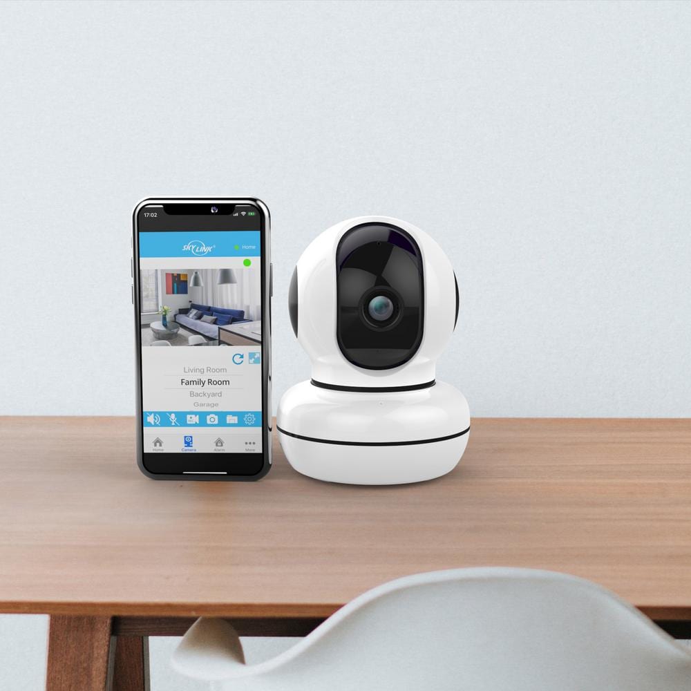 Stay connected and secure your home with the SkyLink WC-400PHB Pan and Tilt HD Security Camera. With its versatile 360-degree view and high-definition video, this camera ensures comprehensive monitoring of any indoor space. Effortlessly controlled through Wi-Fi via the SkylinkCAM I app, it provides real-time alerts and clear night vision for uninterrupted safety.