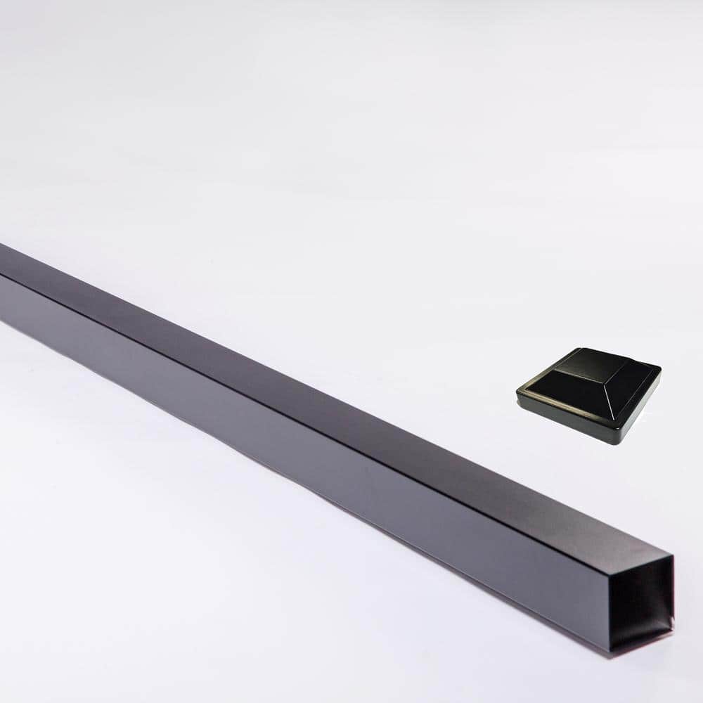 Slipfence 3 in. x 3 in. x 12 ft. 4 in. Black Powder Coated Aluminum Fence Post Includes Post Cap