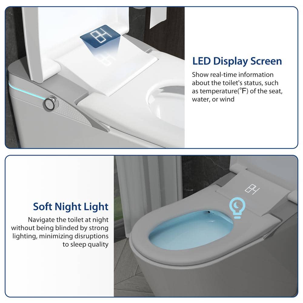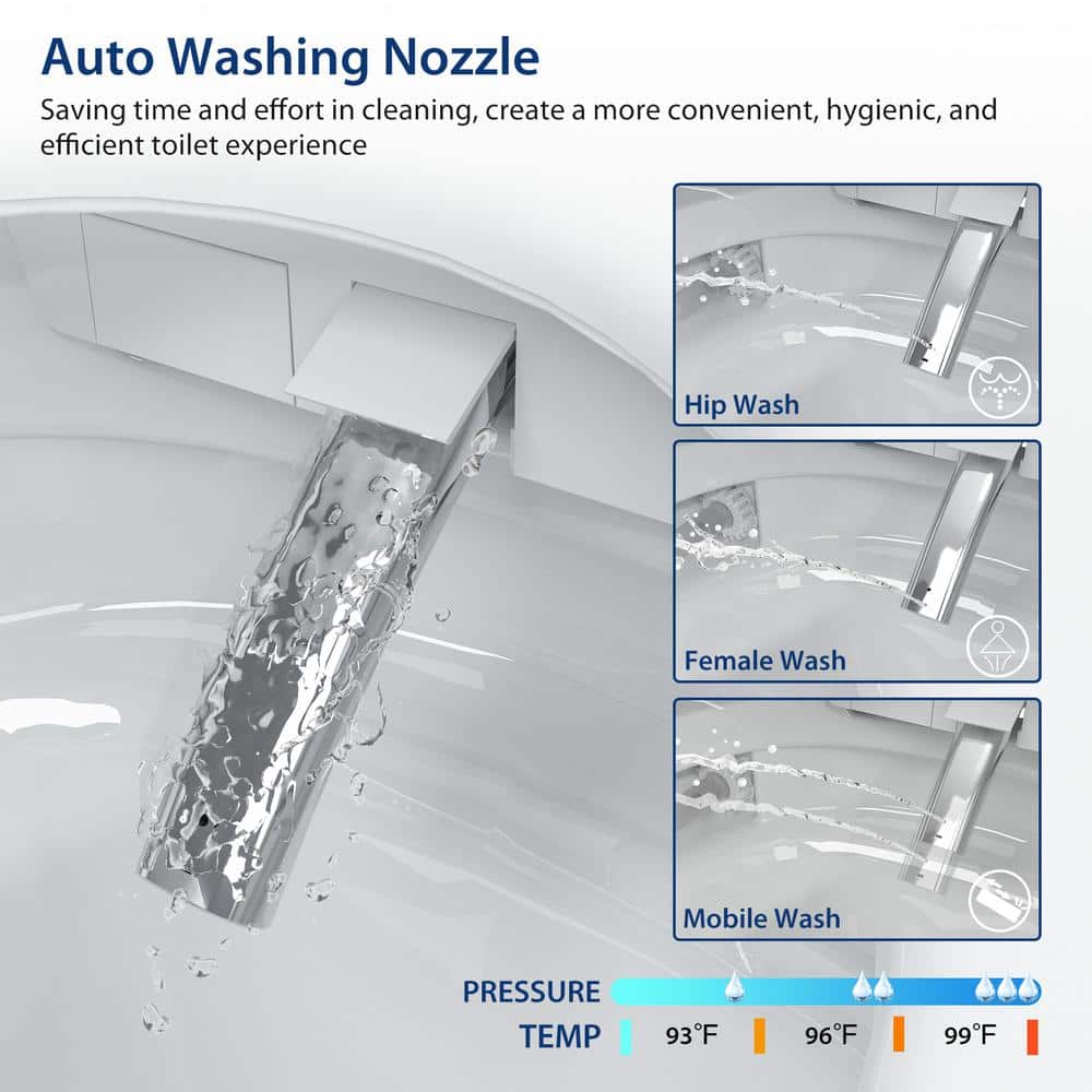 Warm Air Dryer: Gently dries with warm air, reducing the need for toilet paper and enhancing cleanliness.