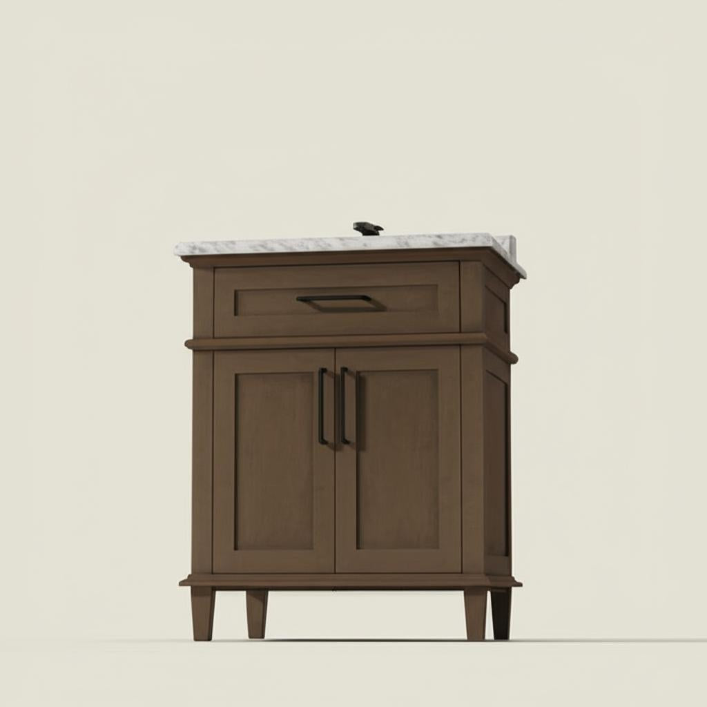 Transform your bathroom into a sanctuary of sophistication with the Sonoma 30-inch vanity. Its Almond Latte finish and Carrara Marble top exude timeless elegance, while the soft-close doors and adjustable shelf offer both style and functionality. Pair it with sleek black hardware for a modern touch, and let it shine as the centerpiece of your powder room or guest bathroom. This vanity is not just furniture; it's a statement of luxurious living.