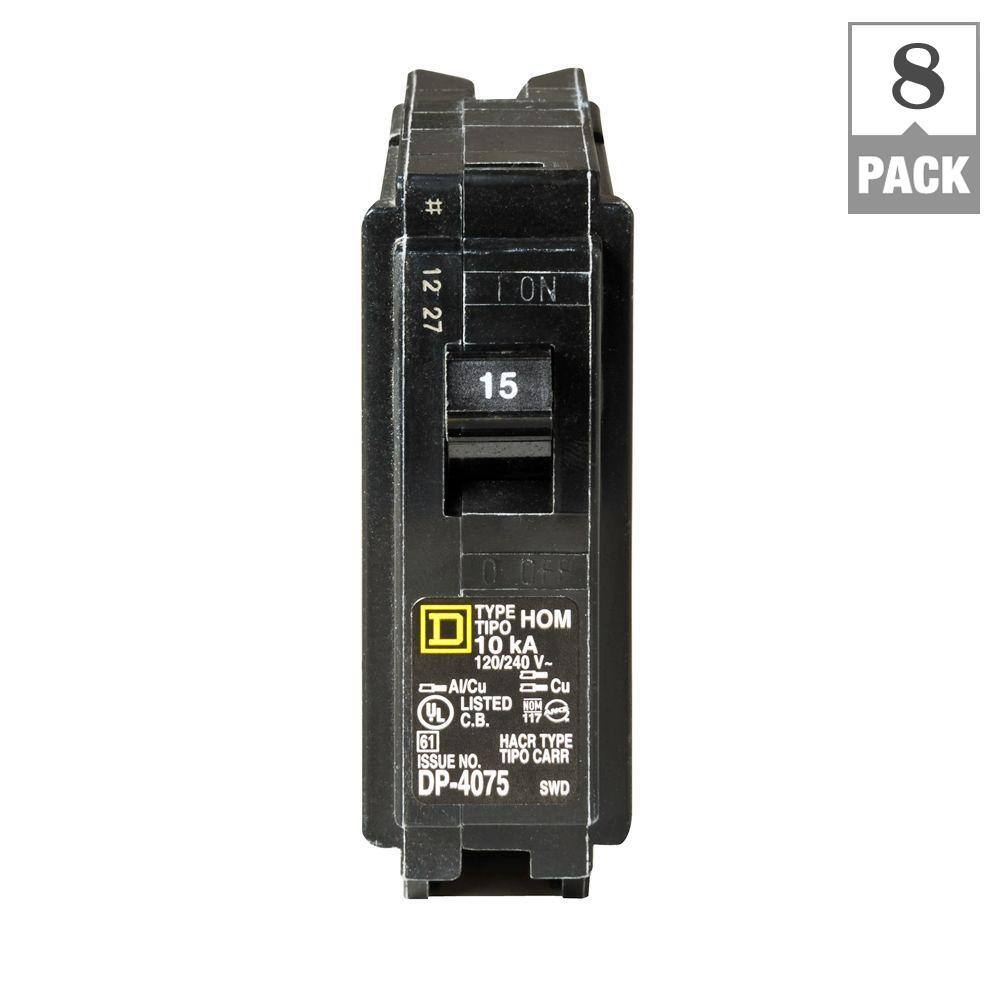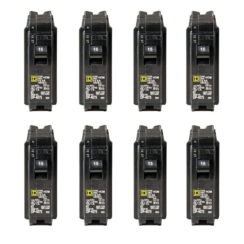 Square D 15 Amp Single-Pole Circuit Breaker 8-Pack