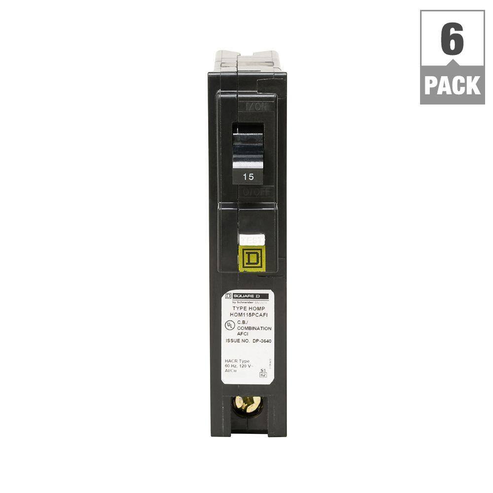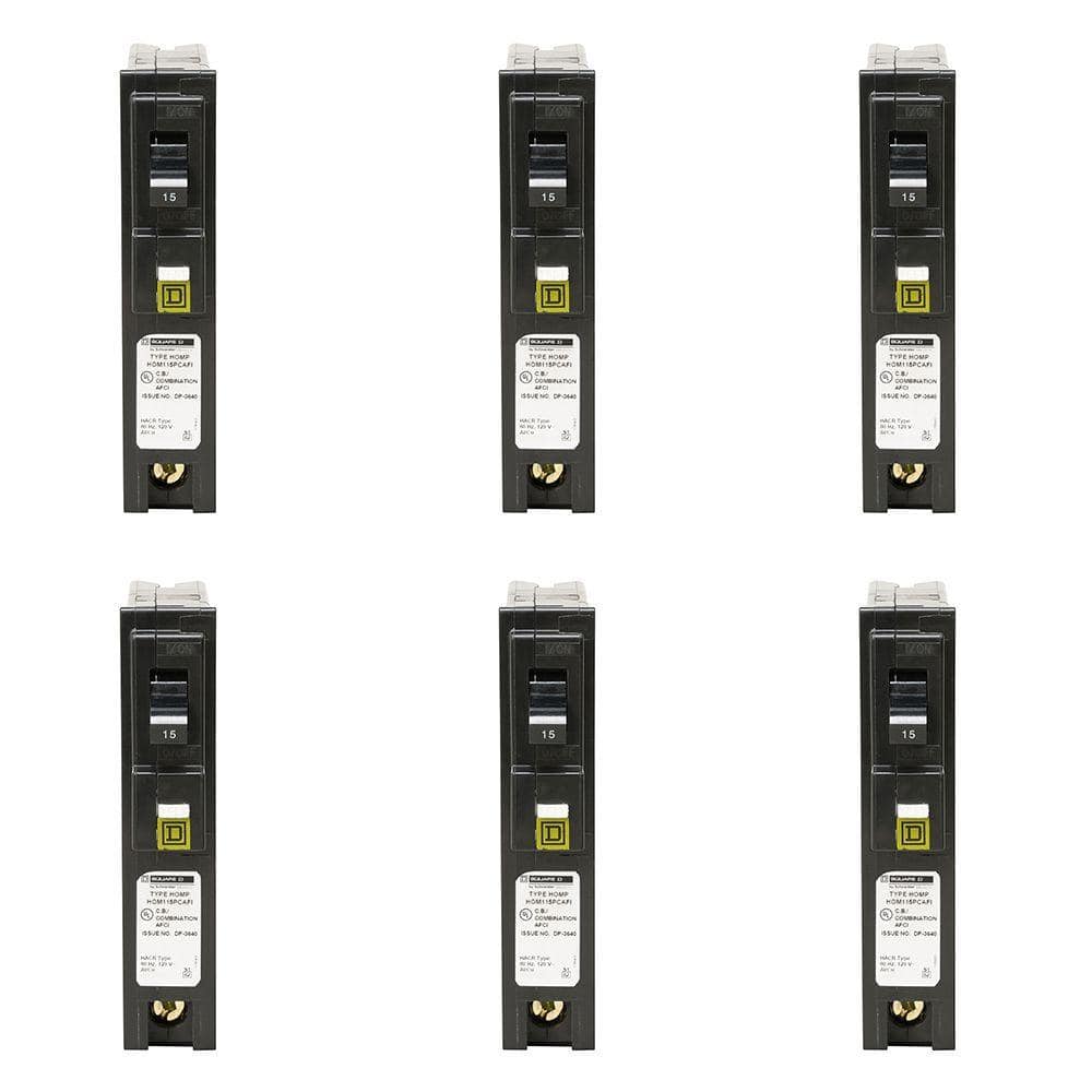 Square D Homeline 15 Amp Arc Fault Circuit Breaker 6-Pack