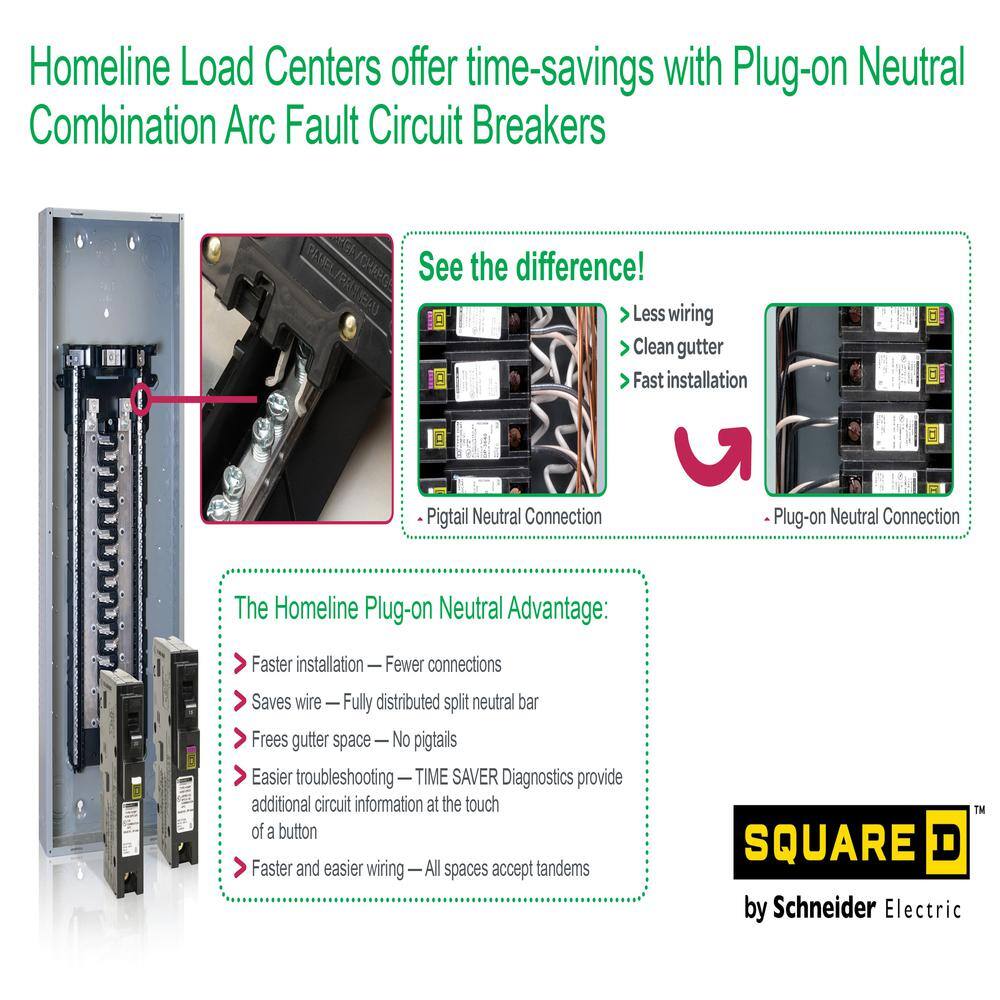 Experience superior protection with the Square D Homeline 15 Amp Single-Pole Plug-On Neutral Combination Arc Fault Circuit Breaker. This 6-pack offers cutting-edge arc detection technology for safer electrical installations, ensuring compatibility with Homeline plug-on neutral panels for easy and efficient set-up.