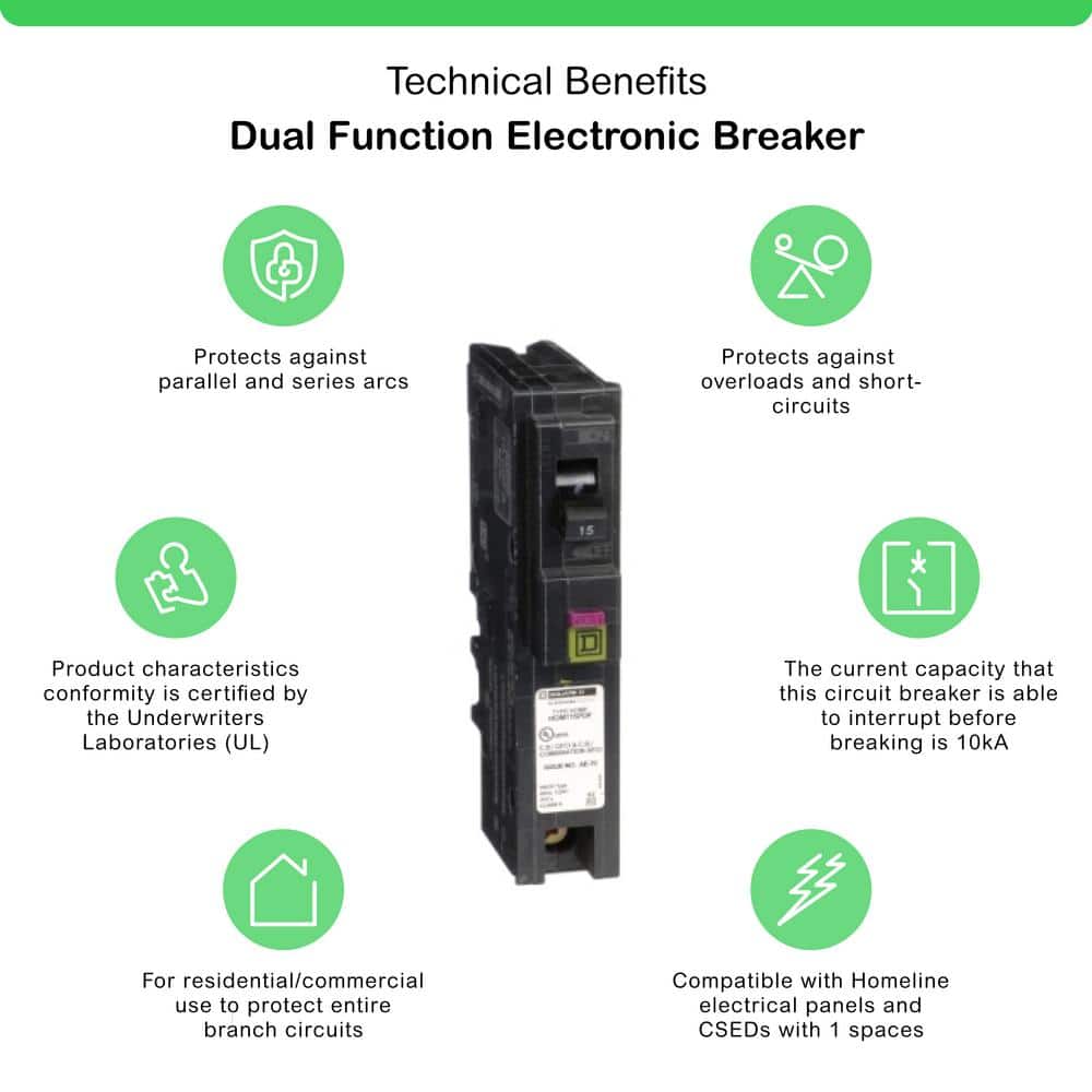 Secure your electrical installations with the Square D Homeline Dual Function Circuit Breaker—your smart choice for unparalleled safety and ease.