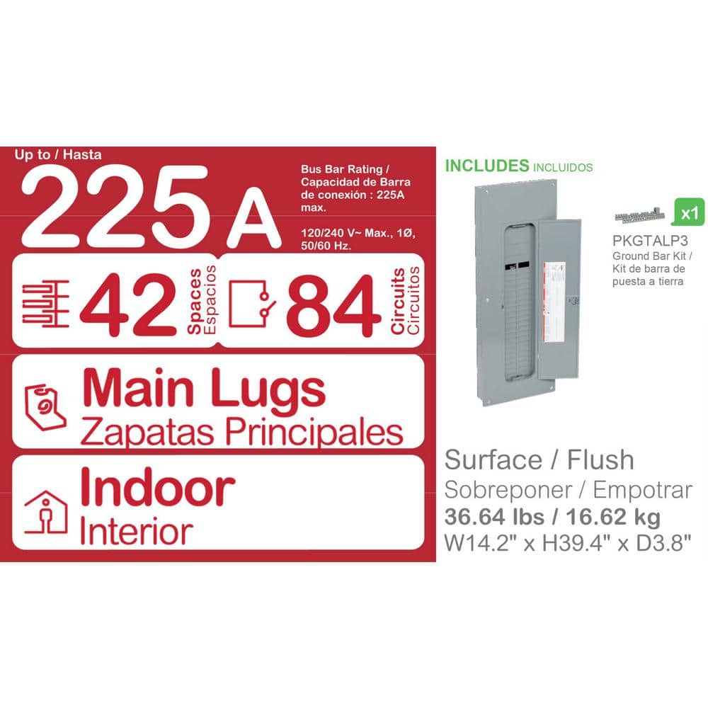 Square D Homeline 225 Amp 42-Space 84-Circuit Indoor Convertible Main Lugs Load Center with Cover