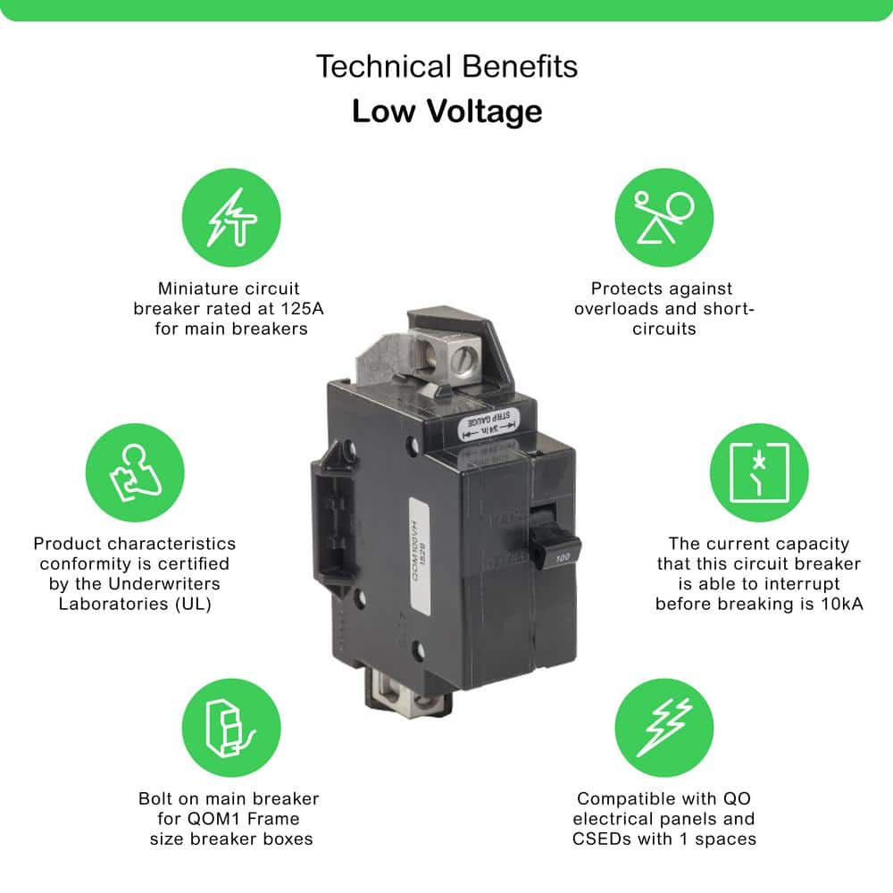 - Durability: Built with a field-installable QOM1 frame suitable for 120/240 Volt AC systems.