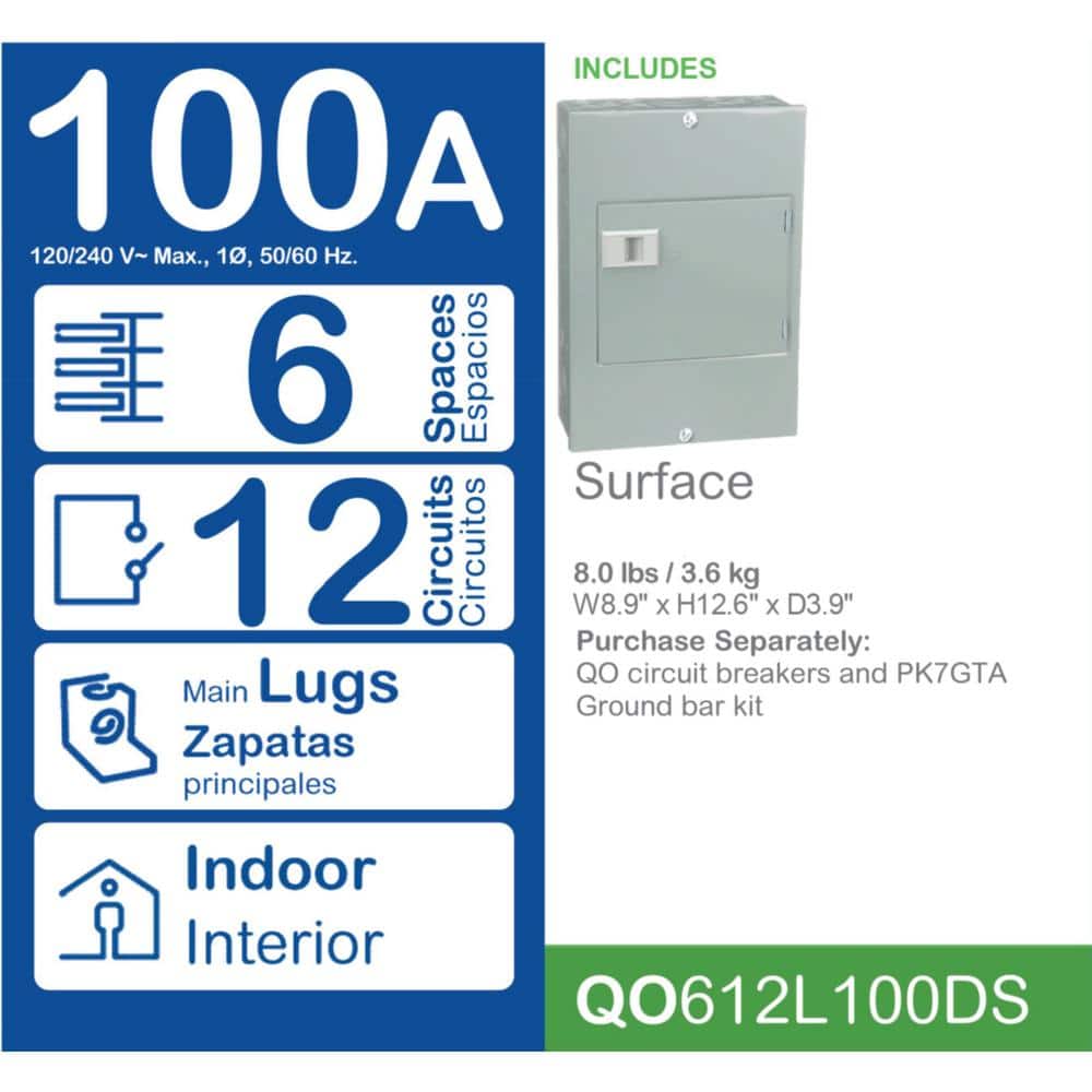 Square D QO 100 Amp 6-Space 12-Circuit Indoor Main Lug Load Center with Surface Mount Cover with Door