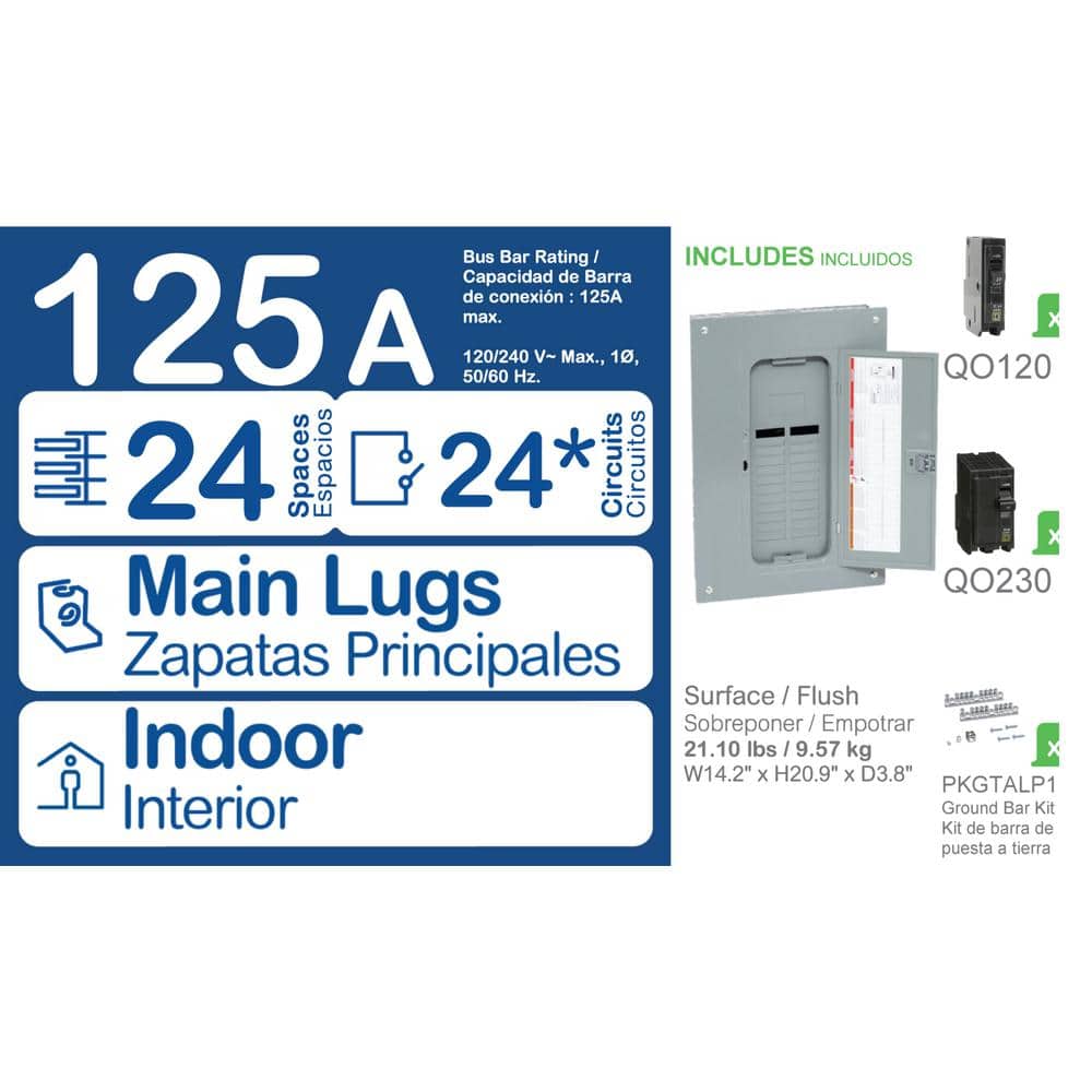 Square D QO 125 Amp 24-Space 24-Circuit Main Lugs Load Center with Cover- Value Pack