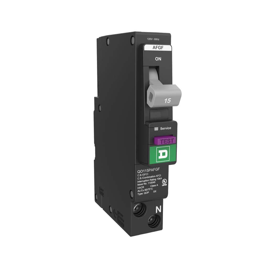 The Square D QO 15 Amp Single-Pole Dual Function Circuit Breaker combines top-tier safety features for both arc fault and ground fault protection, all in a compact, easy-to-install design. Perfect for kitchen and laundry circuits, it meets NEC codes with its innovative plug-on neutral design, ensuring a quicker, more efficient installation process.