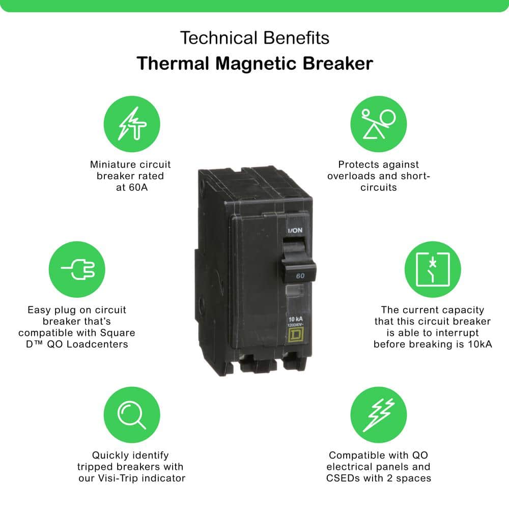 Achieve seamless sophistication in your home's electrical foundations with the Square D QO 60 Amp Circuit Breaker. Designed not only for functionality but also for enhancing the reliability of your power management, its sleek design complements the impeccable quality within your breaker box. Utilize this circuit breaker's versatile compatibility to ensure every room is as elegantly powered as it is luxuriously styled. Embrace this essential balance of safety and elegance in your electrical design.