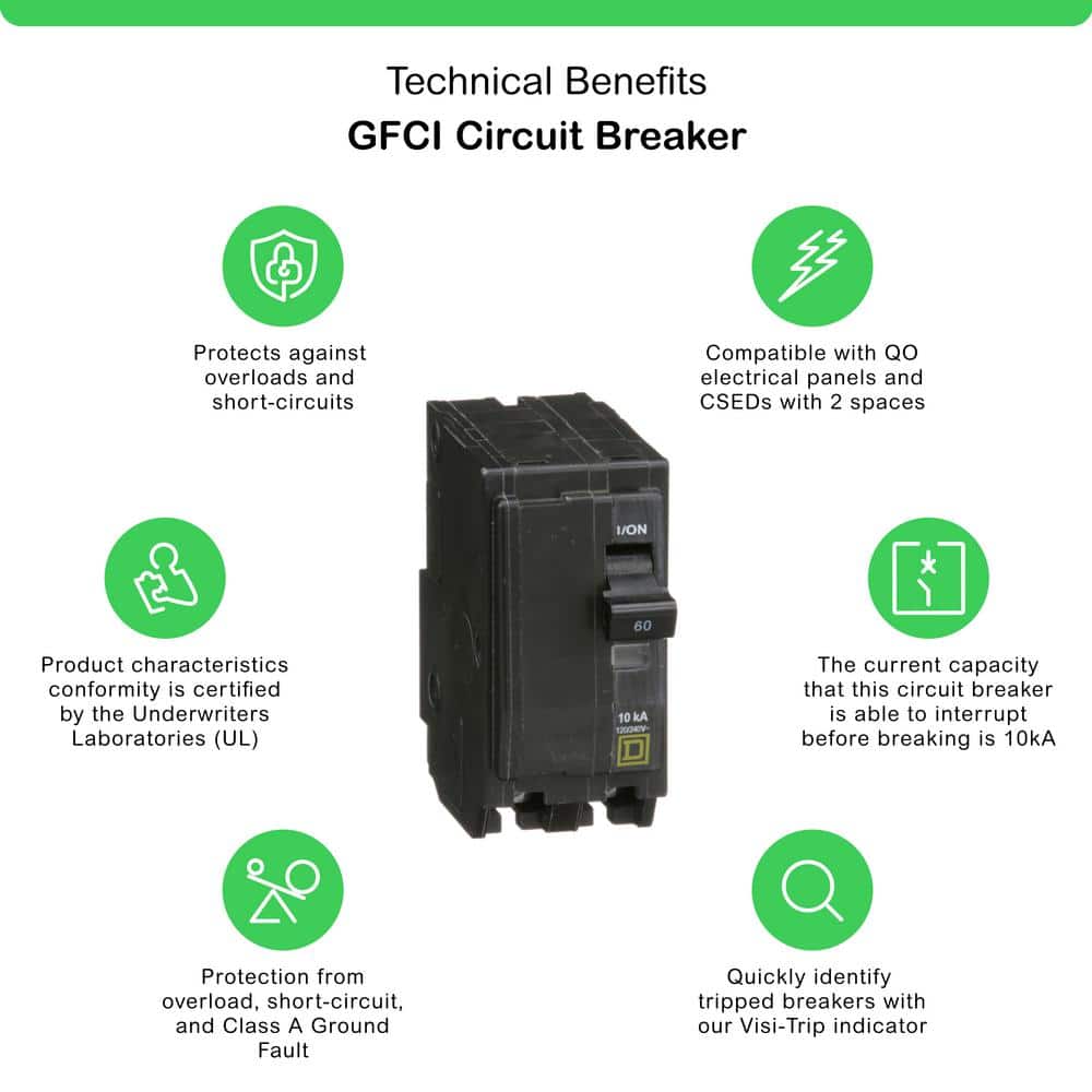 Square D QO 60 Amp 2-Pole GFCI Breaker