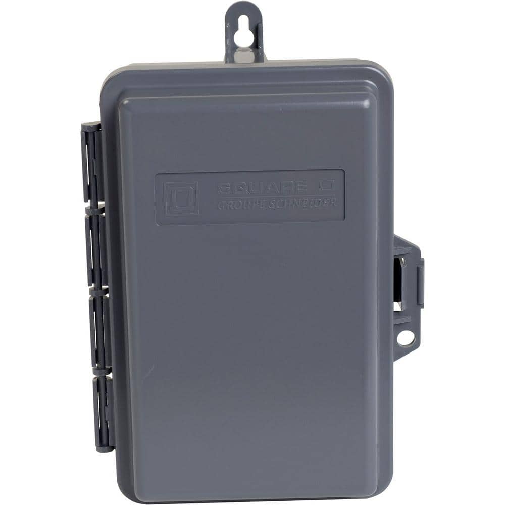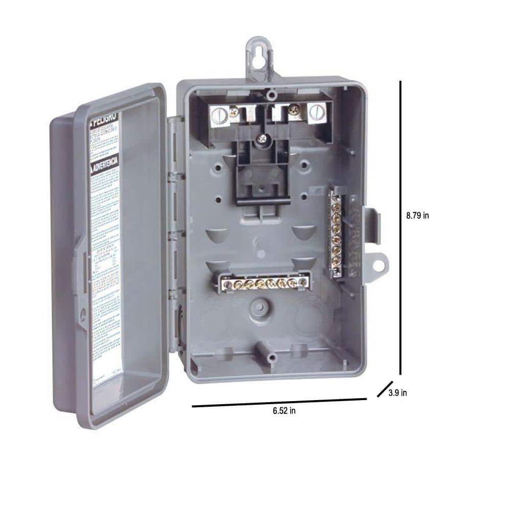 Outdoor Use: Rated for rainproof outdoor conditions with a durable non-metallic enclosure.