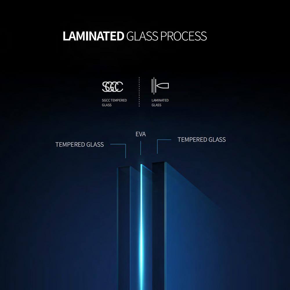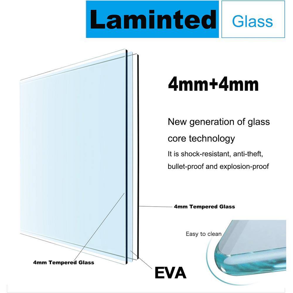 A: The laminated tempered glass is crafted with multiple layers to ensure it is resistant to breakage and shattering, enhancing shower safety.