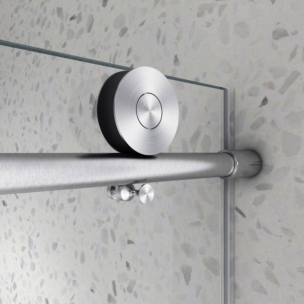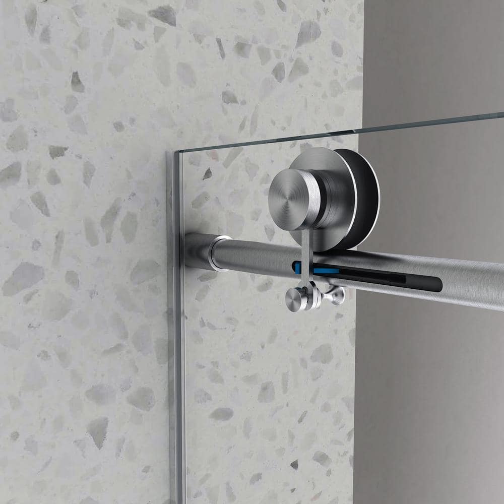 Staykiwi 60 in. W x 76 in. H Sliding Frameless Shower Door in Brushed Nickel Finish with Clear Glass