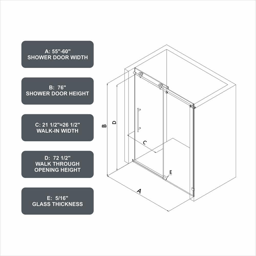 - Design: Frameless sliding door with a sleek brushed nickel finish, enhancing any modern bathroom setting.