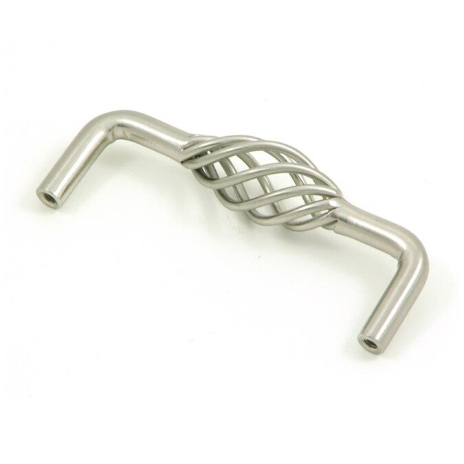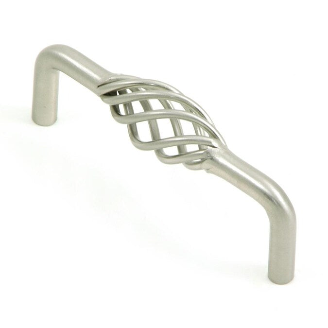 Enhance your cabinetry with the Stockbridge Satin Nickel Birdcage Drawer Pull, featuring a sophisticated twisted cage design. Crafted from high-quality solid zinc, this decorative hardware not only offers lasting durability but also adds a touch of elegance to any space with its satin nickel finish.