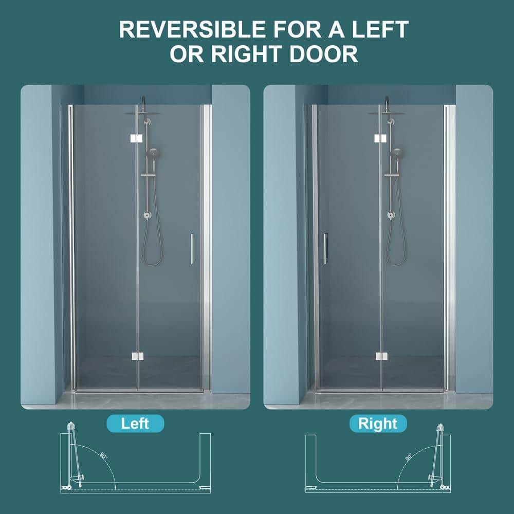 Bring elegance and efficiency to your bathroom today with the Stufurhome Bifold Semi-Frameless Shower Door—order now for a seamless upgrade.
