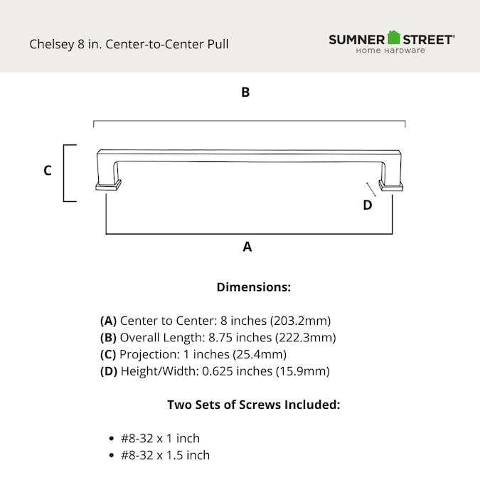 • Design: Sleek rectangular shape with an 8-inch center to center length for a modern look.