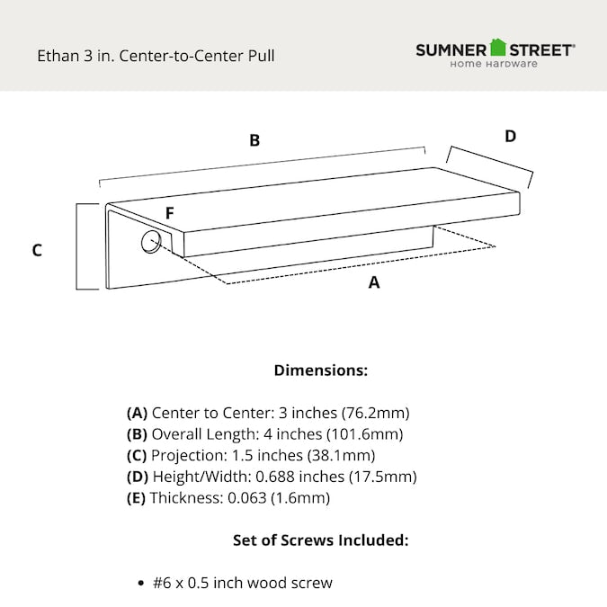 A: The Ethan Drawer Pull includes #6 x 0.5-inch wood screws for fast and straightforward installation. Simply align with pre-drilled holes and secure with a screwdriver.