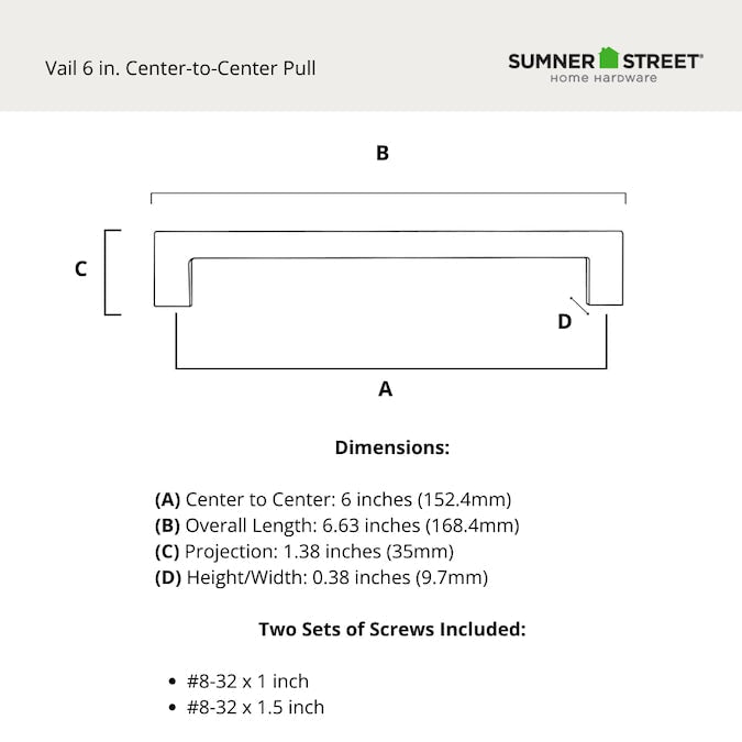 A: Installation is straightforward with the included screws. Use the #8-32 x 1 inch screws for thinner drawer fronts or the #8-32 x 1-1/2 inch screws for thicker fronts. Align the pull over pre-drilled holes and secure them into place.