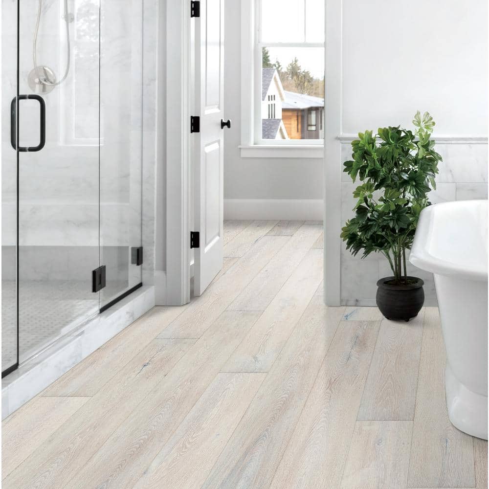 Transform any room into a sanctuary of sophistication with the Sure+ Lambswool White Oak flooring. With its subtly wire-brushed texture and delicate lambswool hue, this engineered hardwood creates an enchanting canvas that complements a wide array of interior styles. Imagine this flooring beneath your favorite vintage armchair or beneath the sleek lines of your kitchen island, imparting a sense of understated opulence. Elevate your living space with this essential addition, crafted to endure the life you love.