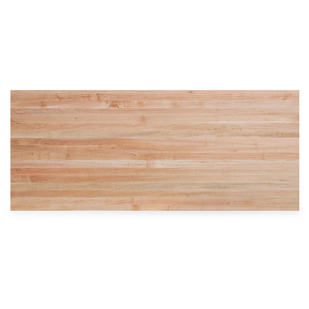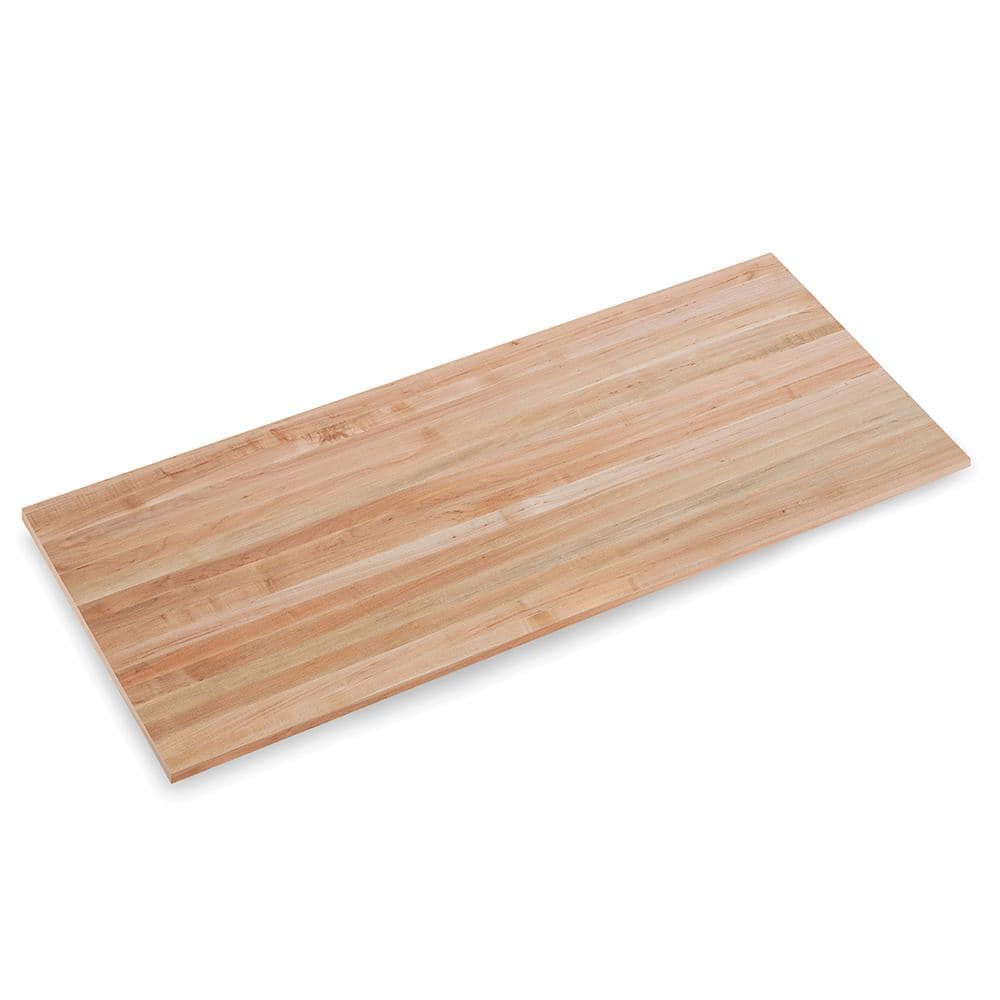 Enhance your kitchen's functionality and aesthetic with the Swaner Hardwood 6 ft. Maple Butcher Block Island Countertop. Crafted from durable, domestically sourced maple wood, this countertop boasts full-length rails and a semi-gloss polyurethane finish that ensures a stunning, high-quality look. Its eased edges and non-toxic finish make it a safe and beautiful addition to any space.