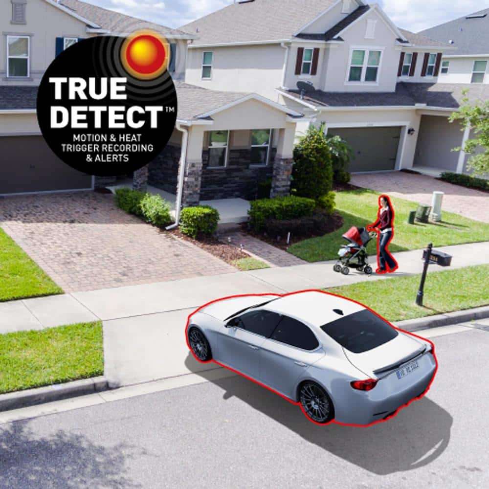 A: True Detect uses heat and motion detection to trigger video recording and send push notifications for fewer false alarms.