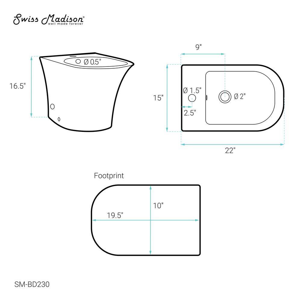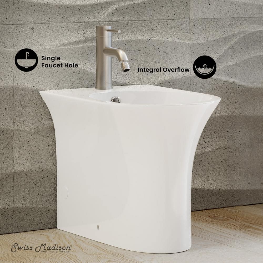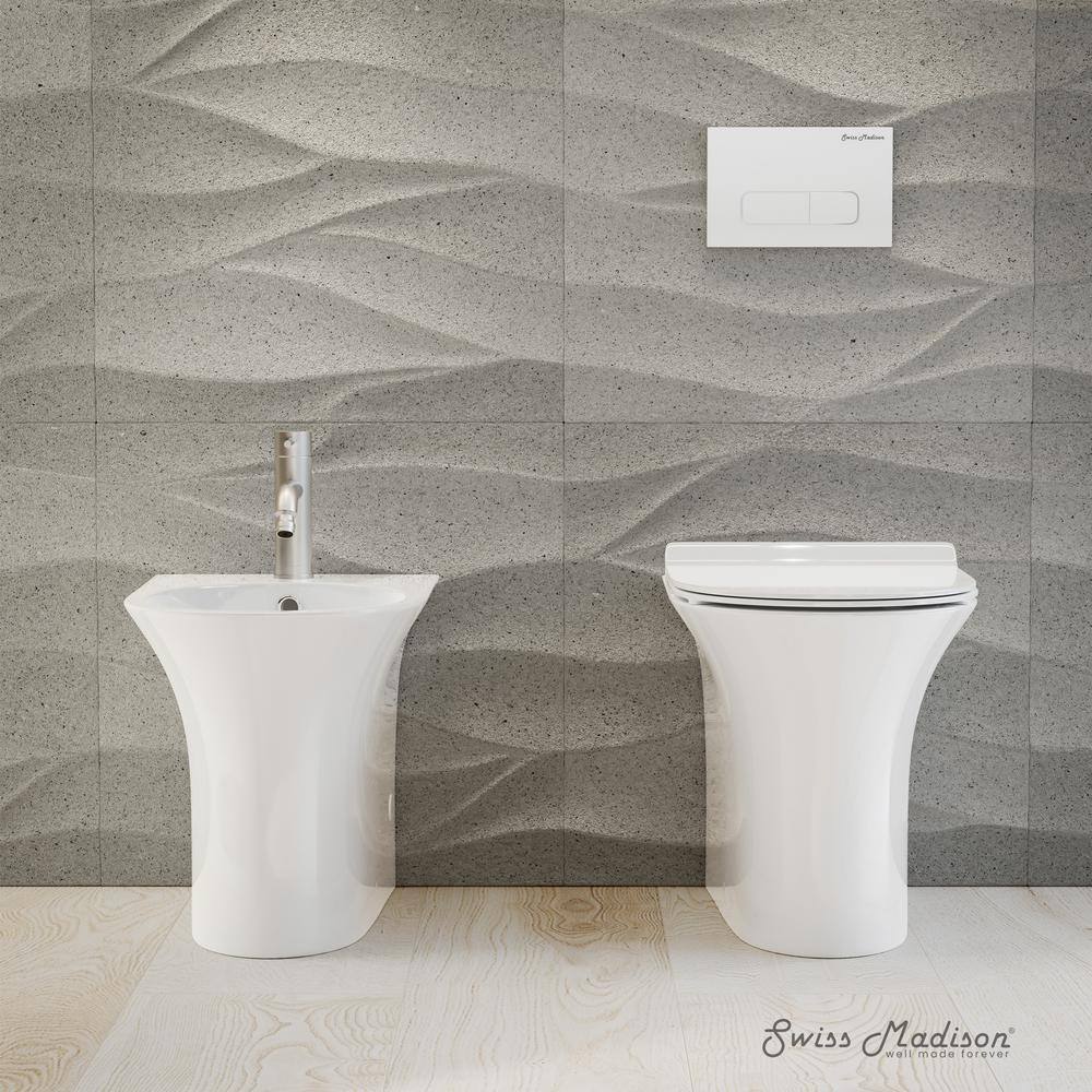 Transform your bathroom into a sanctuary with the Swiss Madison Cascade Bidet as its centerpiece. Its pristine glossy white finish gleams under ambient lighting, accentuating the exquisite elongated bowl design. Pair it with rich, textured fabrics and metallic accents to create a harmonious ensemble that exudes elegance. This bidet's modern silhouette and unparalleled comfort redefine luxury living, making it an essential addition to any sophisticated bathroom space.