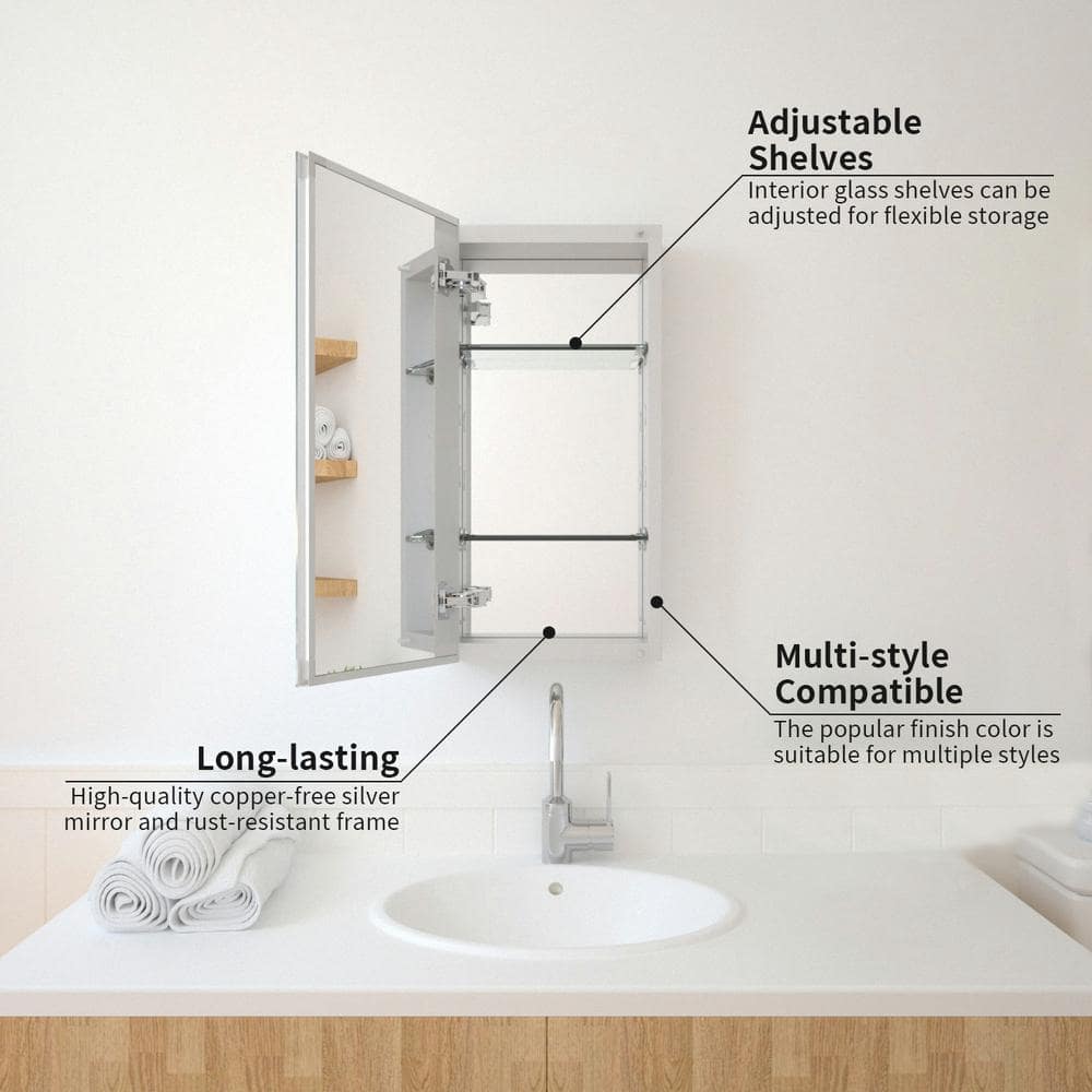 Enhance your bathroom storage with the TaiMei Frameless Beveled Mirror Medicine Cabinet. This versatile piece allows for recessed or surface-mount installation and features soft-close Blum hinges for luxurious, noise-free use. Its copper-free silver mirror finish provides lasting beauty and rust resistance, suitable for any bathroom décor.