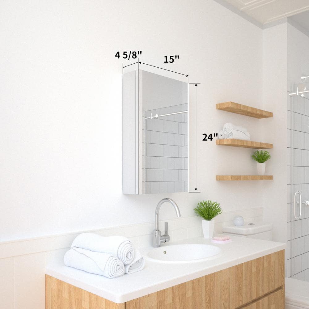 TaiMei 15 in. x 24 in. Frameless Recessed or Surface-Mount Beveled Single Mirror Bathroom Medicine Cabinet