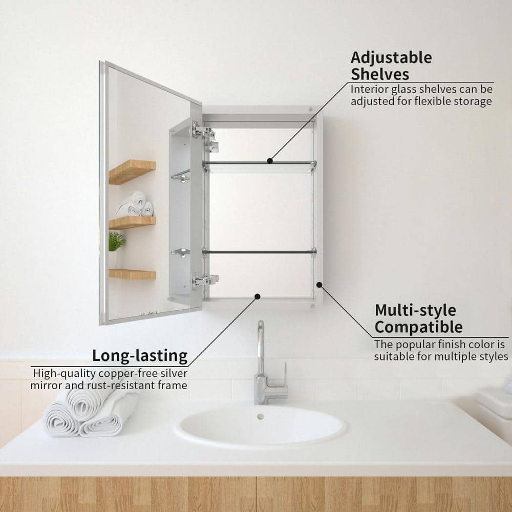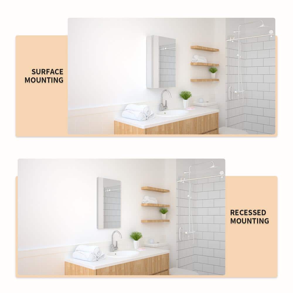 A: Yes, this medicine cabinet is designed for both recessed and surface-mounted installations, making it versatile for different bathroom setups.