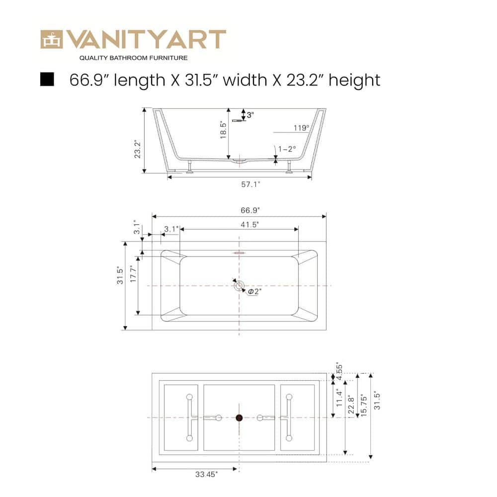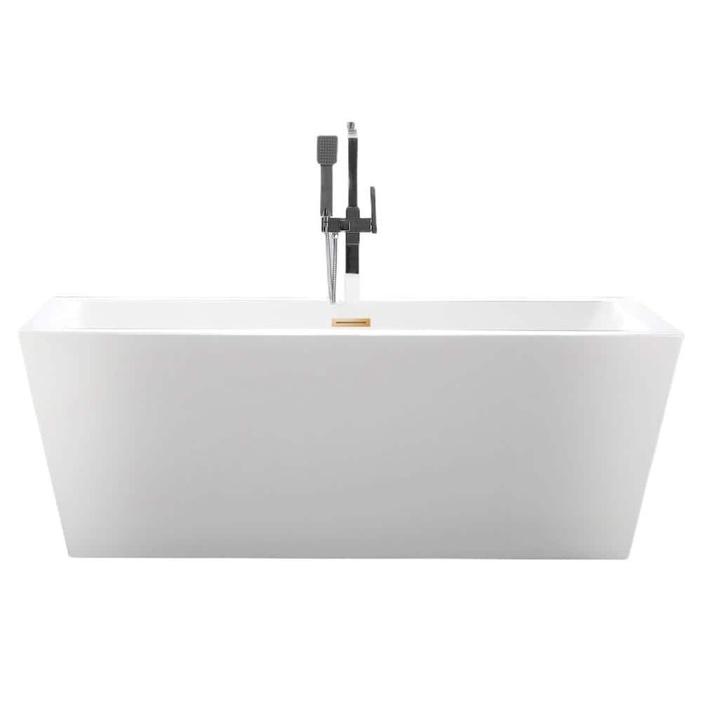 Experience serenity in the ultimate bath setting with the Vanity Art Tarbes 67" Freestanding Bathtub. Crafted from premium acrylic with a chic white and titanium gold finish, this soaking tub combines elegance with durability. Its contemporary design effortlessly elevates any bathroom while providing a luxurious, relaxing experience.