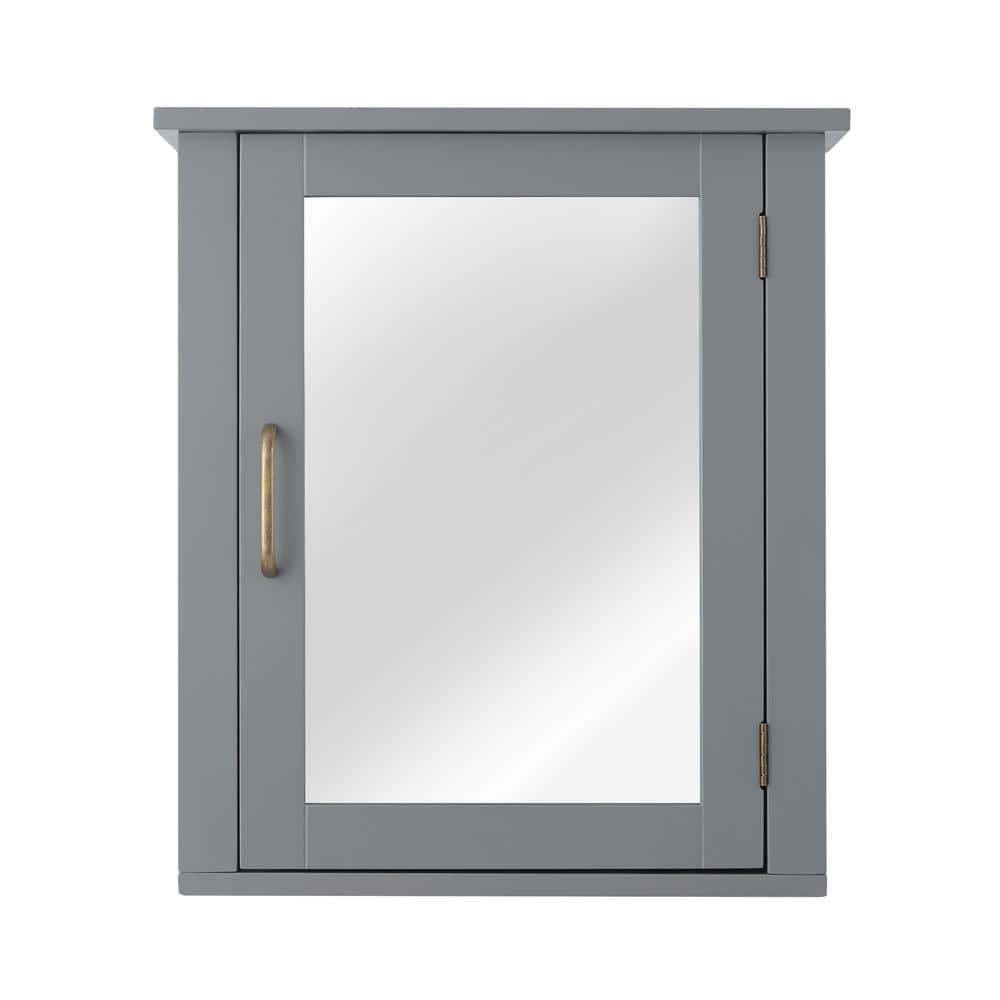 The Teamson Home Mercer Medicine Cabinet combines mid-century modern chic with practical storage solutions. Its gray wood finish and mirrored door provide stylish elegance while the adjustable shelf offers customized storage options, perfect for small bathroom spaces.