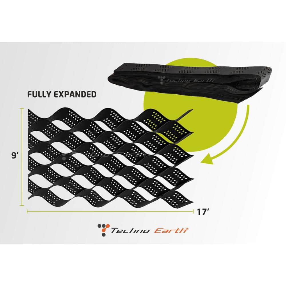 The Techno Earth 9 ft. x 17 ft. Geocell Honeycomb Grid is an ultra-durable HDPE paver designed to stabilize unpaved surfaces and improve load-bearing capabilities. Ideal for driveways, parking areas, or erosion-prone landscapes, its honeycomb structure effectively distributes weight while allowing for water permeability. With easy installation and high tensile strength, it’s a versatile choice for large outdoor projects.