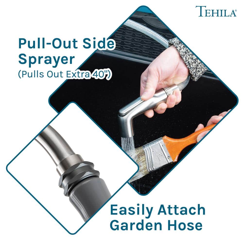 • Complete Kit Included: Comes with a stainless steel faucet, side sprayer, water supply lines, and installation hardware.