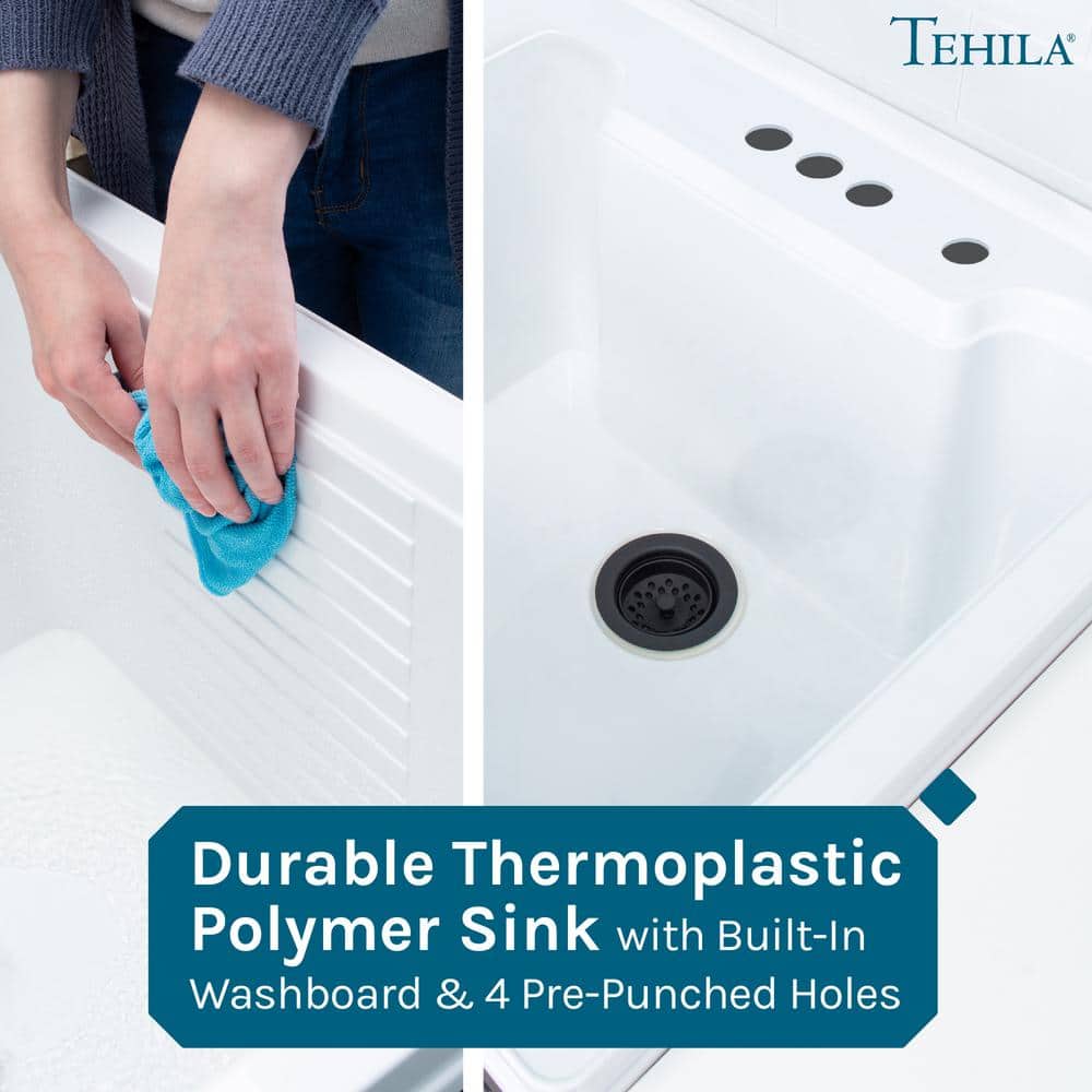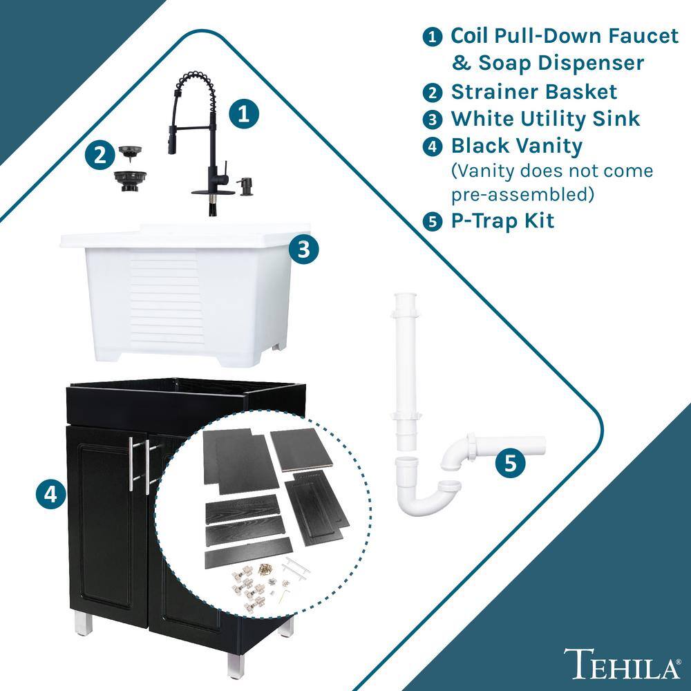TEHILA Thermoplastic Laundry Sink with Black Faucet & Cabinet