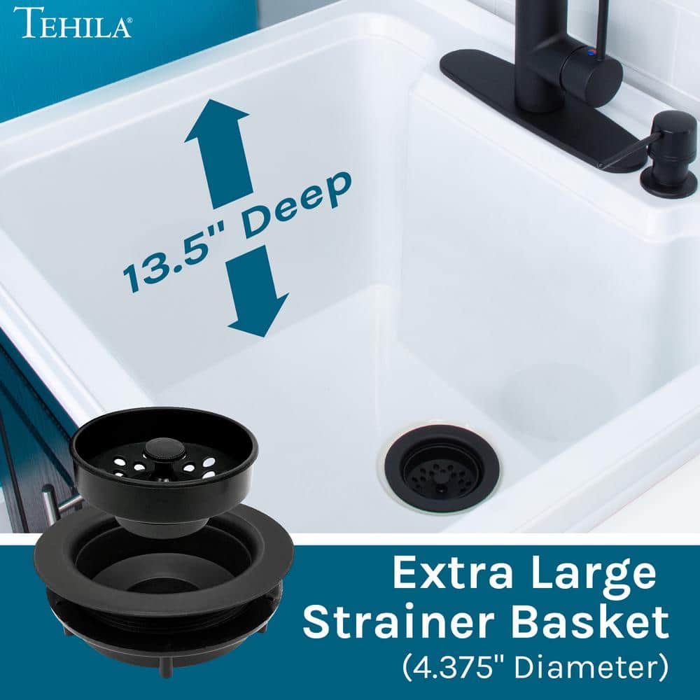 With the TEHILA Thermoplastic Laundry Sink, transform your utility room into a stylish haven where functionality meets elegance. The sleek matte black faucet and coordinating cabinet introduce a sophisticated flair, instantly refreshing your space. Try pairing with crisp white linens or metallic storage accessories for a polished look. This ensemble is more than a laundry sink; it's an essential for a modern, refined household.