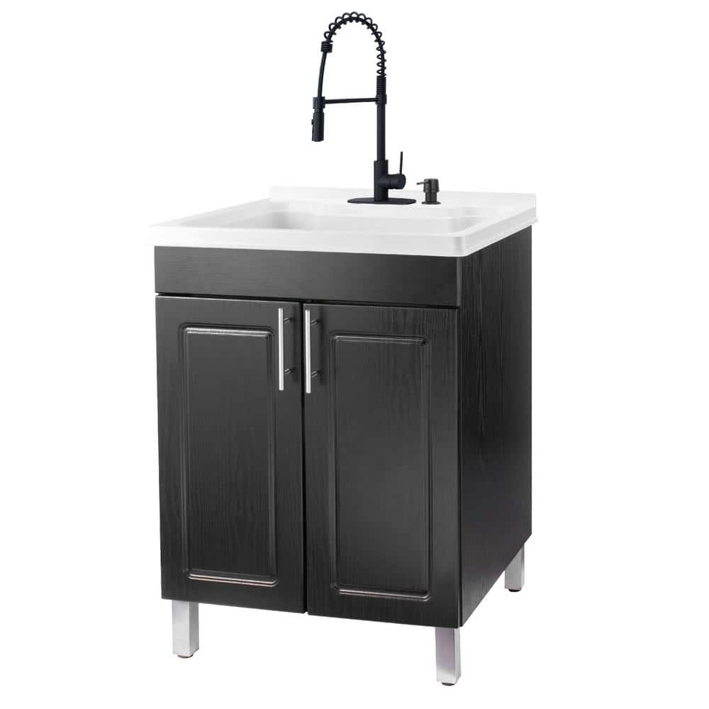 TEHILA 18 Gallons 21.75 in. x 25 in. Thermoplastic Drop-in Laundry Sink with Black Faucet, Black Cabinet, and Soap Dispenser