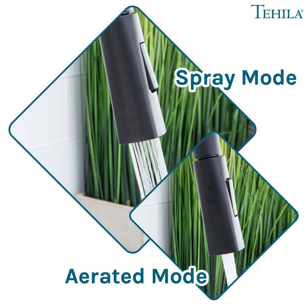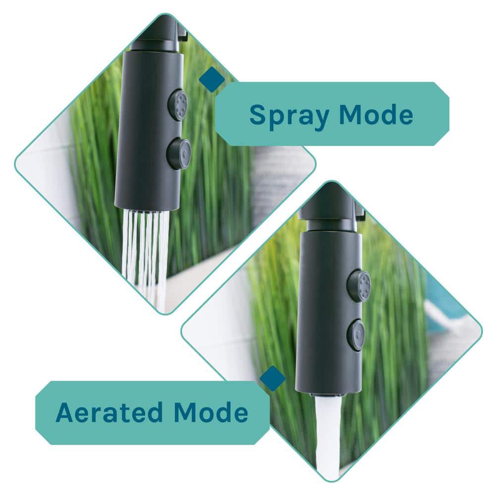 A: Yes, the faucet head features easy-to-press buttons for both spray and aerated water.