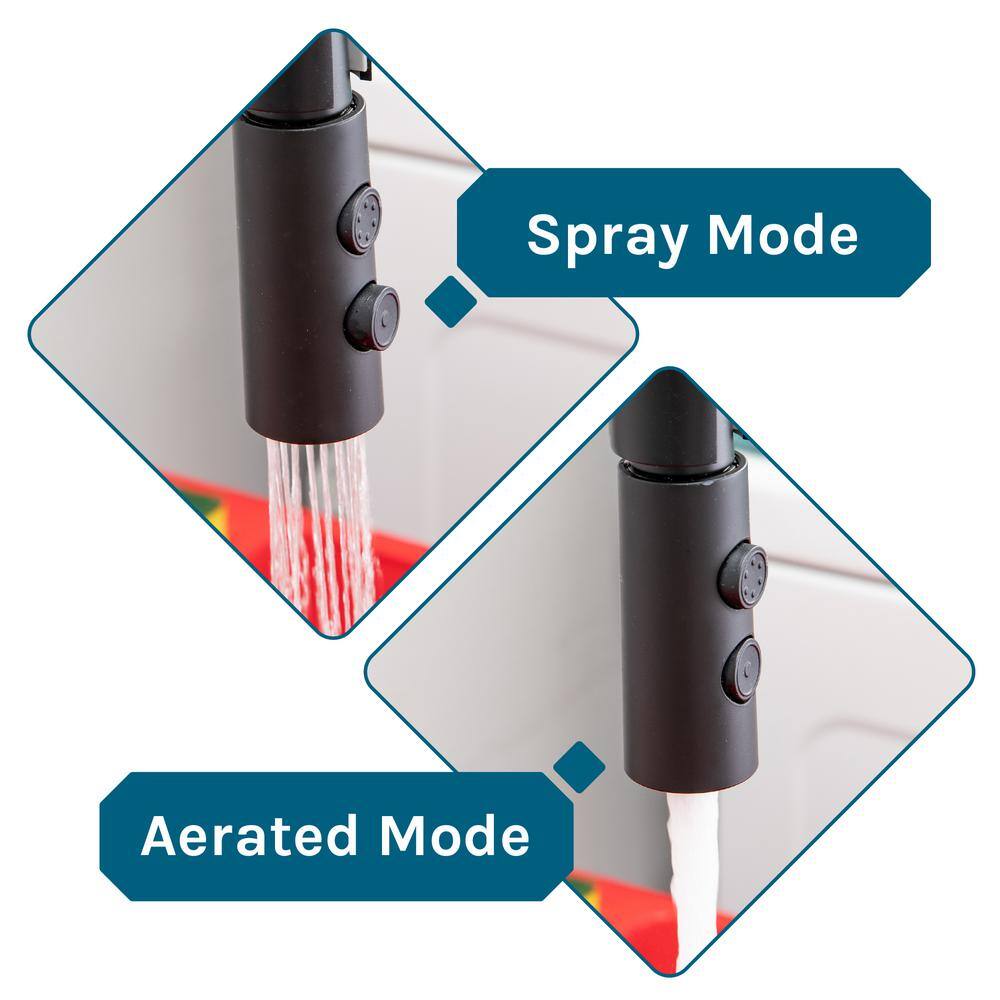 Innovative Faucet Design: Matte black coil pull-down faucet with dual spray and steady stream options.