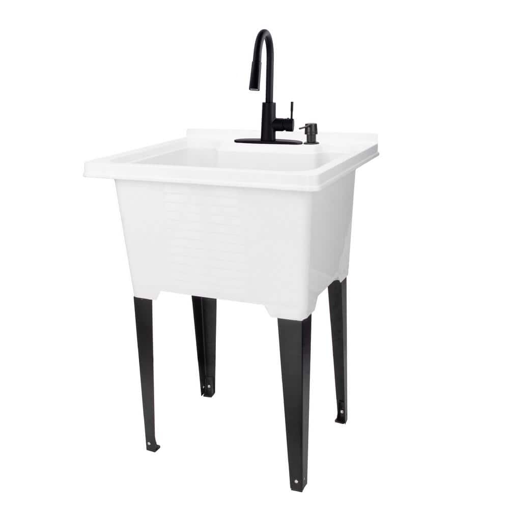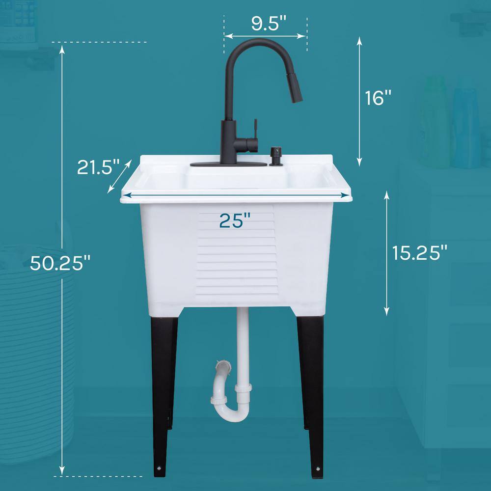 TEHILA 25 in. ABS Plastic Freestanding Utility Sink with Black Hi-Arc Faucet